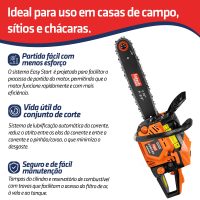 A motosserra SAW4500 da Intech Machine é ideal para uso em casas de campo, sítios, chácaras e fazendas, no manejo de árvores e corte de lenhas e toras.